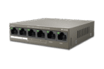 The switch features 4 IEEE 802.3at/af-compliant RJ45 ports. The entire switch offers a maximum PoE power output of 58 W, and 30 W for a single port, to supply power to and data transmission with IP cameras.
